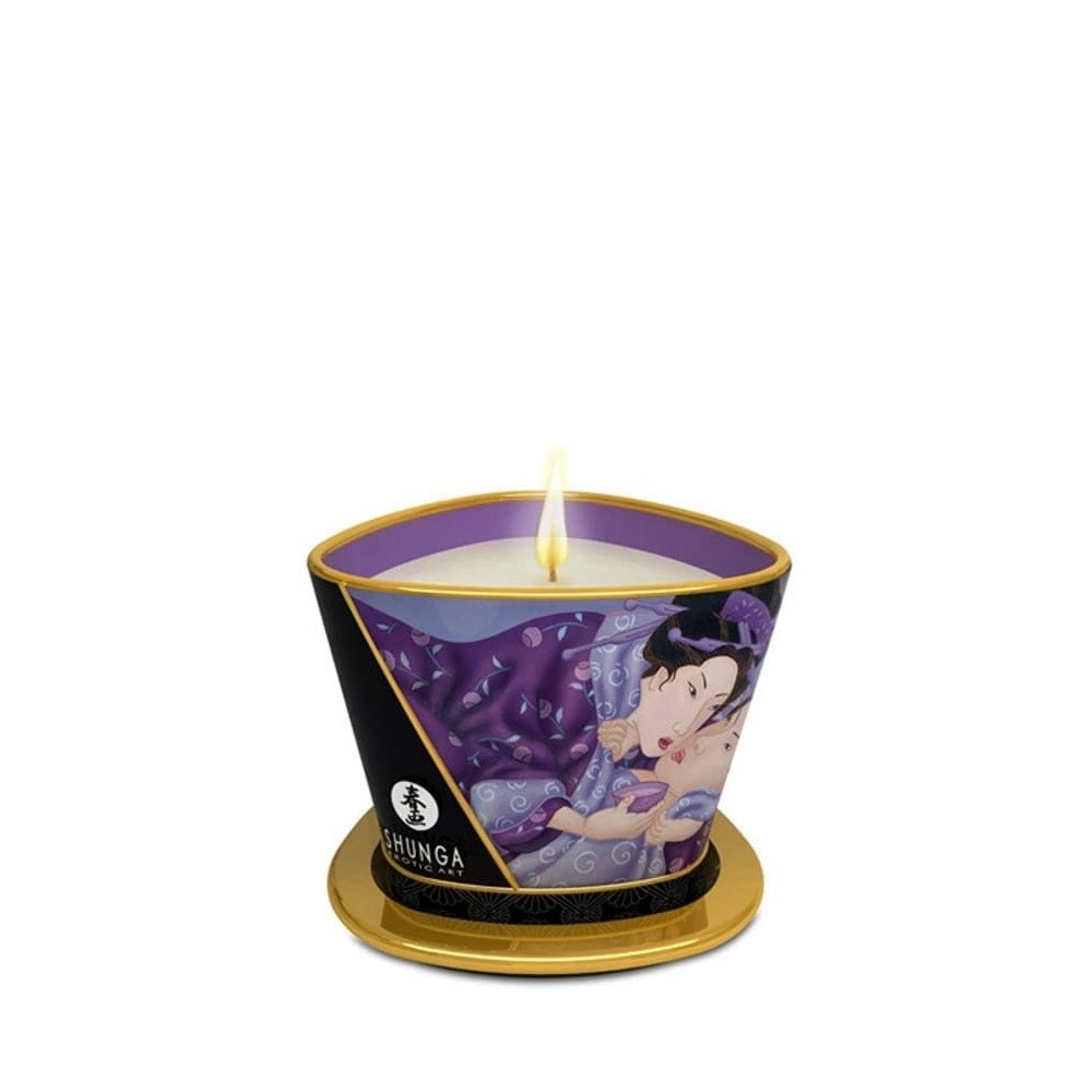 SHUNGA masažna sveča z eksotičnim vonjem je inovativna kombinacija organskega sojinega voska in naravnih olj, združenih v svečo, ki ustvarja čutno vzdušje in nudi nežno masažo.